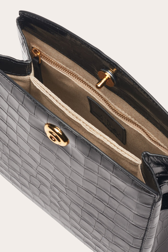 Minimalist Pushlock Clutch is a considered choice for formal evenings. It comes in two options—vintage effect leather and suede— and is detailed with a mandala-inspired metallic lock. Stow your phone, keys, and maybe a small card deck inside.