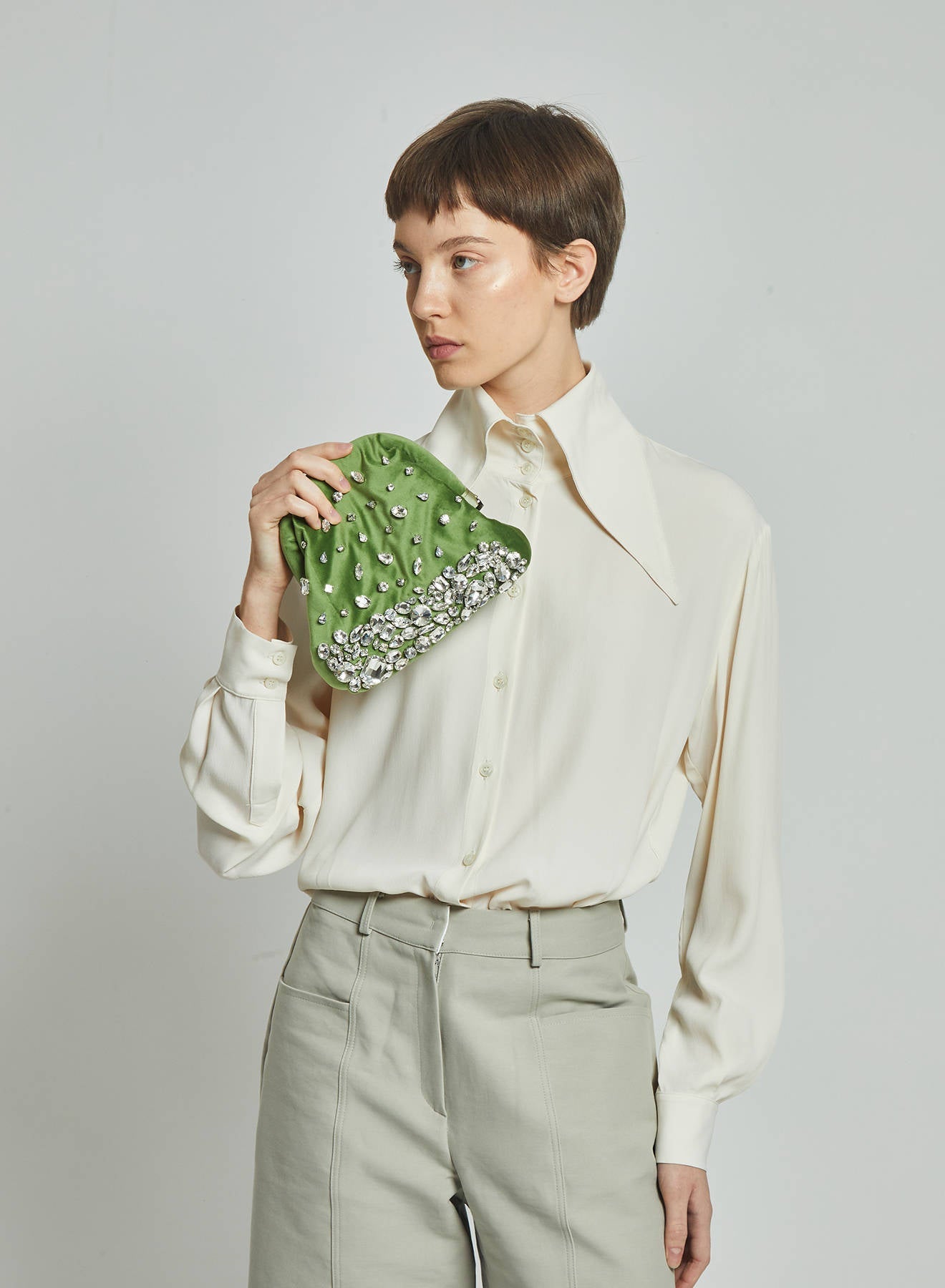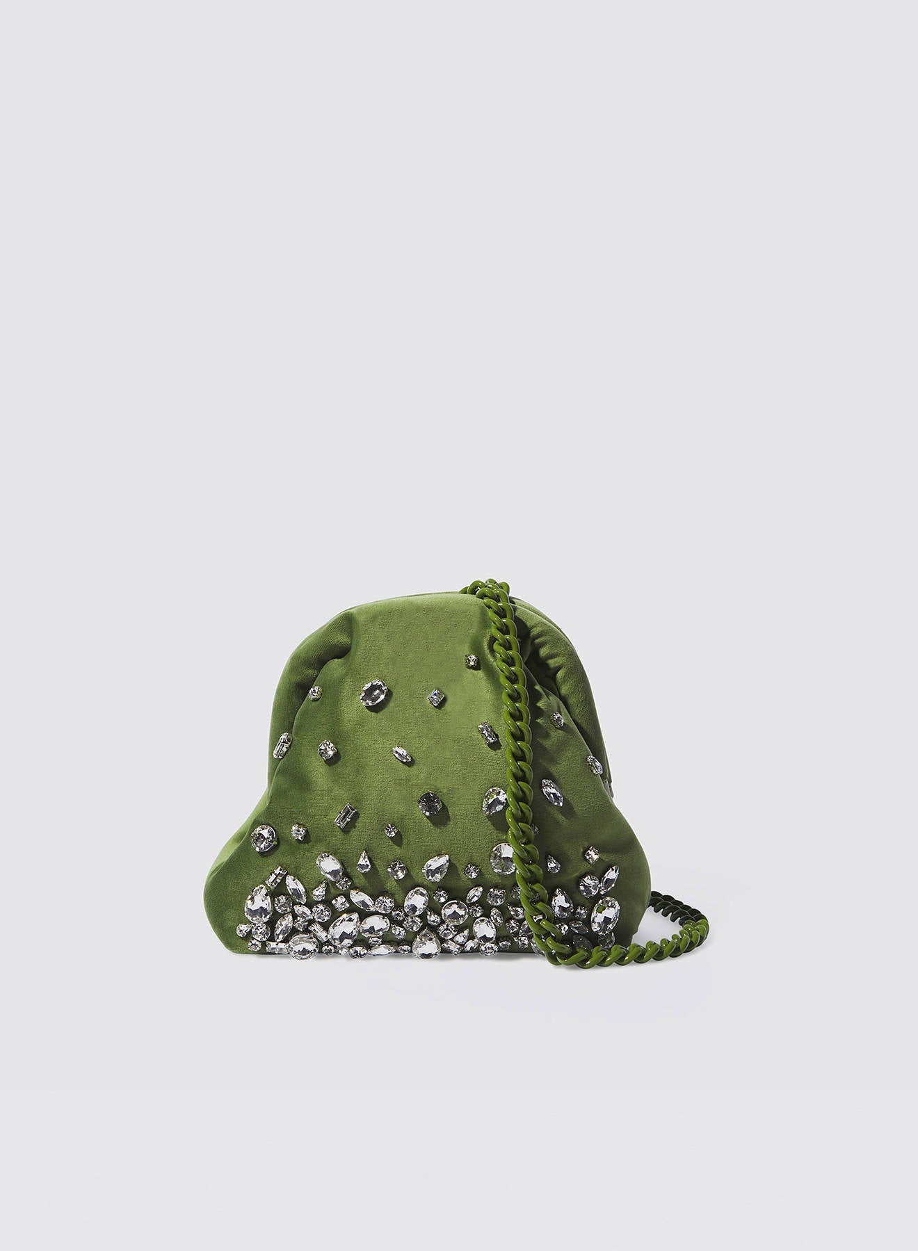 Small clutch in soft velvet combines refinement and craftsmanship. It is a small masterpiece of elegance. The hand-embroidered stones embellish the surface, creating a play of light and texture that captures the eye. Compact and sophisticated, it is the ideal accessory for evening events or occasion looks. Each piece is unique, the result of craftsmanship with attention to the smallest details.