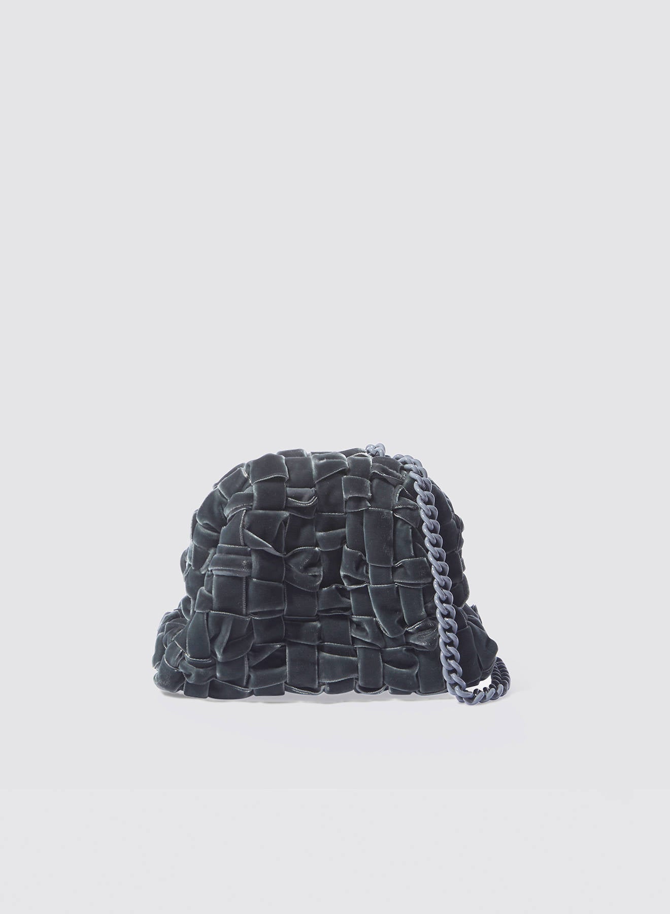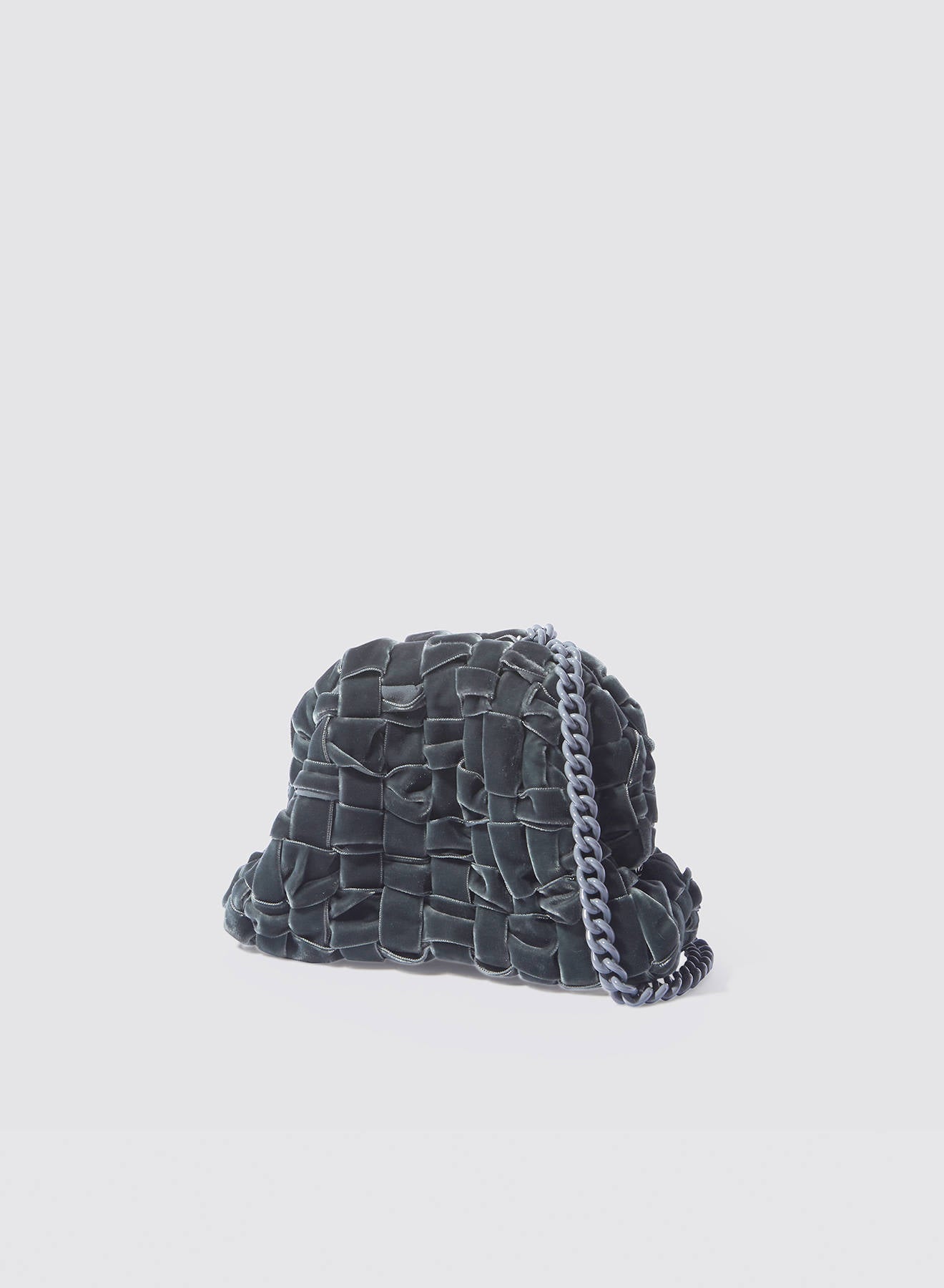 Small women's clutch in woven velvet ribbon fabric, handmade on ancient looms. This model is the Maria La Rosa icon bag, perfect for the winter season, emblem of a new metropolitan elegance, which ensures capacity and functionality. It is equipped with a tone-on-tone chain to wear it also as a shoulder bag and there are many color varieties to choose from. Entirely designed and produced in Italy.