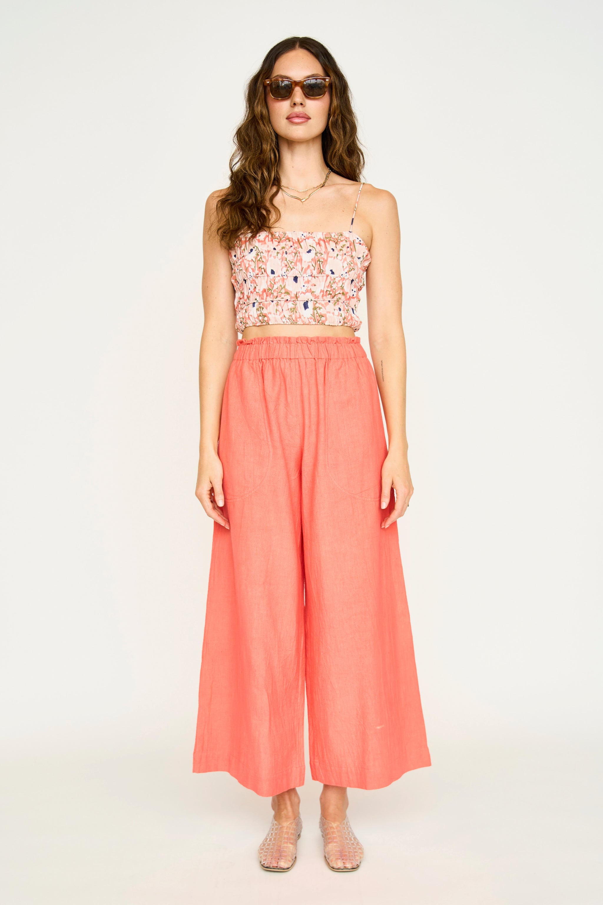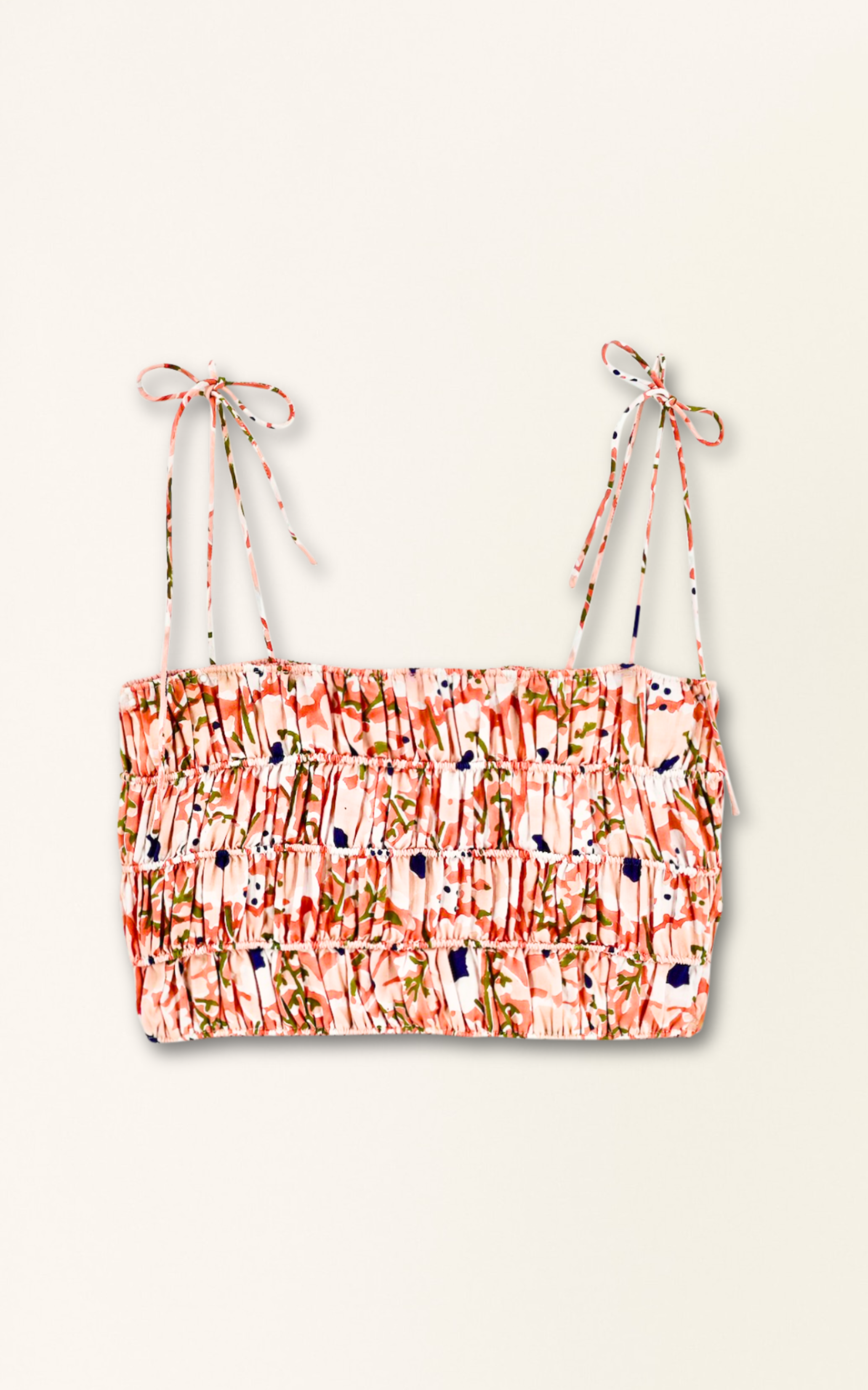 • Cropped tank top with smocked elastic bodice