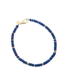 Natural lapis beads make up the body of the necklace with pops of gold beads in between. Clasp is brass with 14k gold plating.