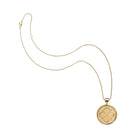 Coin pendant made of sterling silver dipped in 14k gold, measuring 0.975" in diameter.