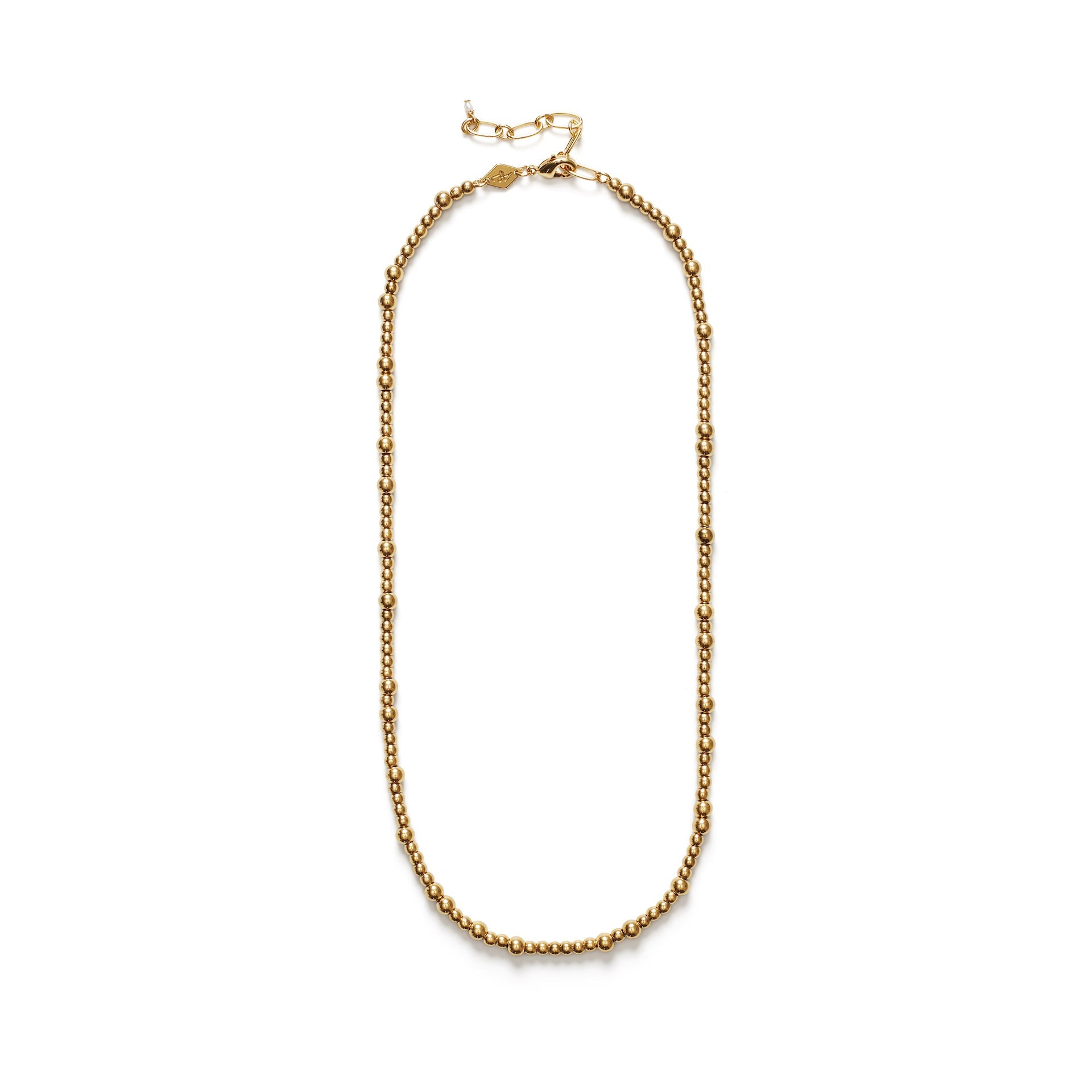 Introducing a new addition to our popular Goldie styles! The Slim Goldie styles embrace both elegance and playfullness at the same time. This necklace features gold beads that mimic the look of pearls, which gives it a natural unique look.
