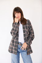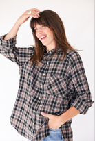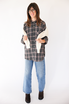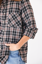 Abri plaid Flannel shirt embodies effortless style, making her a versatile and timeless wardrobe staple. Her classic checkered pattern evokes a rustic and outdoorsy charm.
