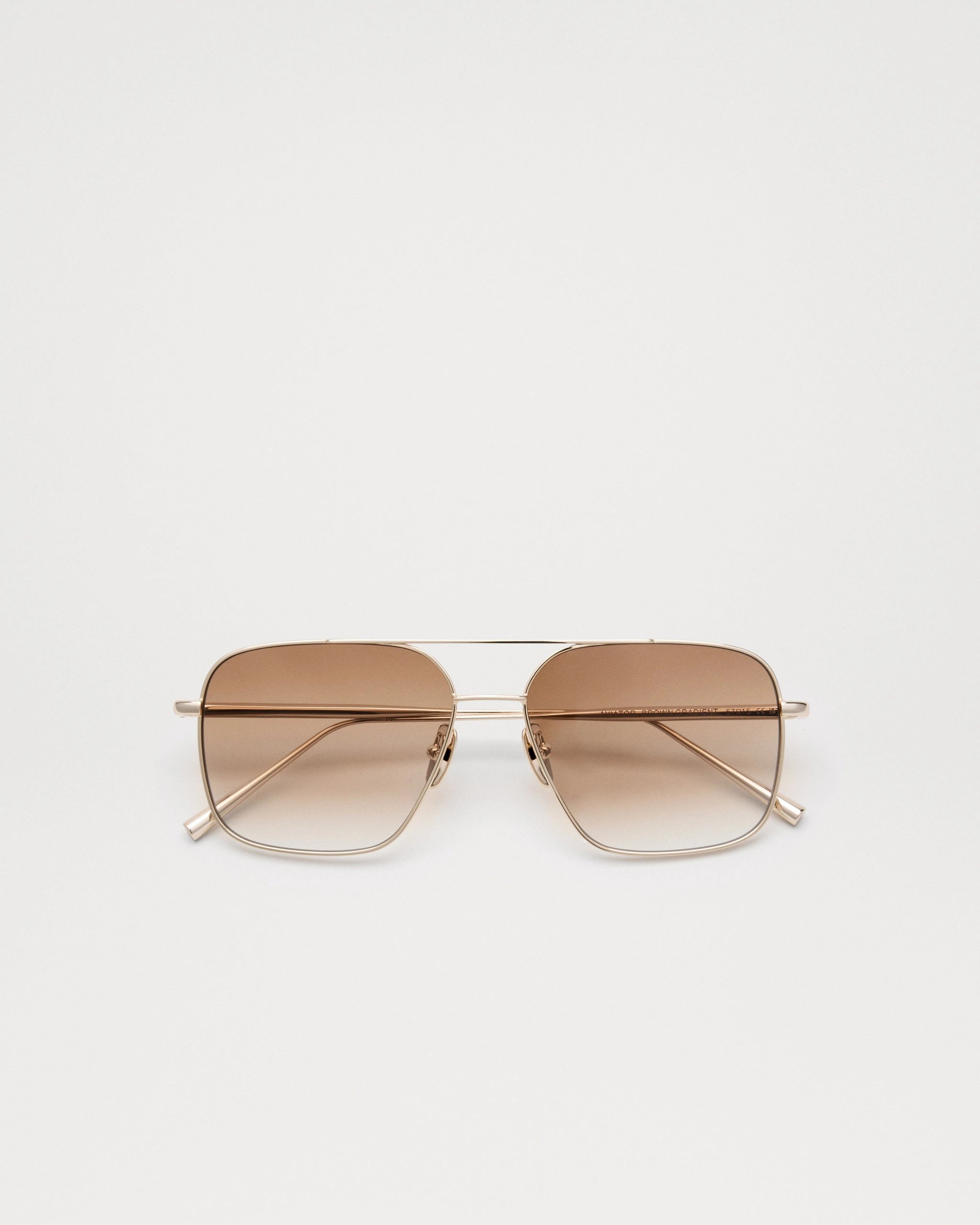 Bold minimalism defines Aviator, a contemporary take on the classic rectangular silhouette. The lightweight frame is handcrafted in shiny stainless steel with slim cylinder- shaped temples and finished with a brow bar. Fitted with UV-protective lenses.