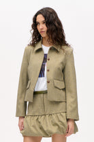 The Bolie Jacket is a chic layering piece made in classic tweed. The tweed jacket has a relaxed fit with collar, back vent and button closure for a timeless silhouette that never goes out of style. Pair it with the matching Nile Trousers or Sikita Skirt for a cool head-to-toe tweed look.