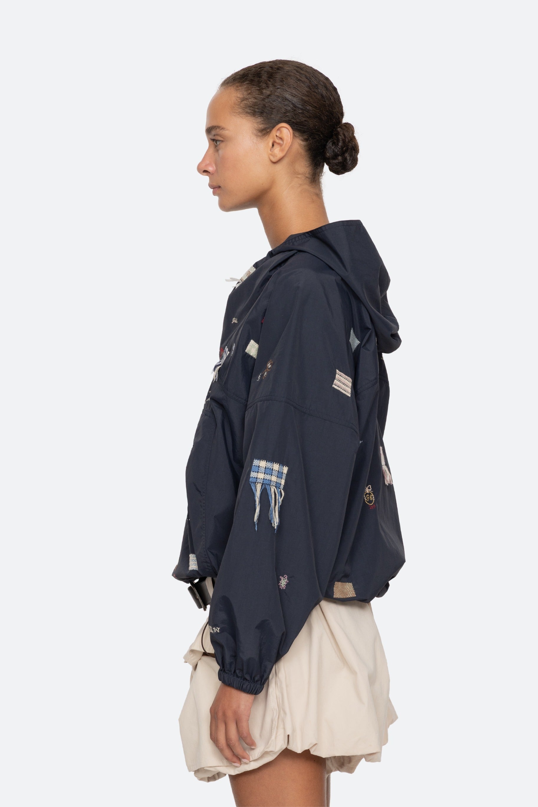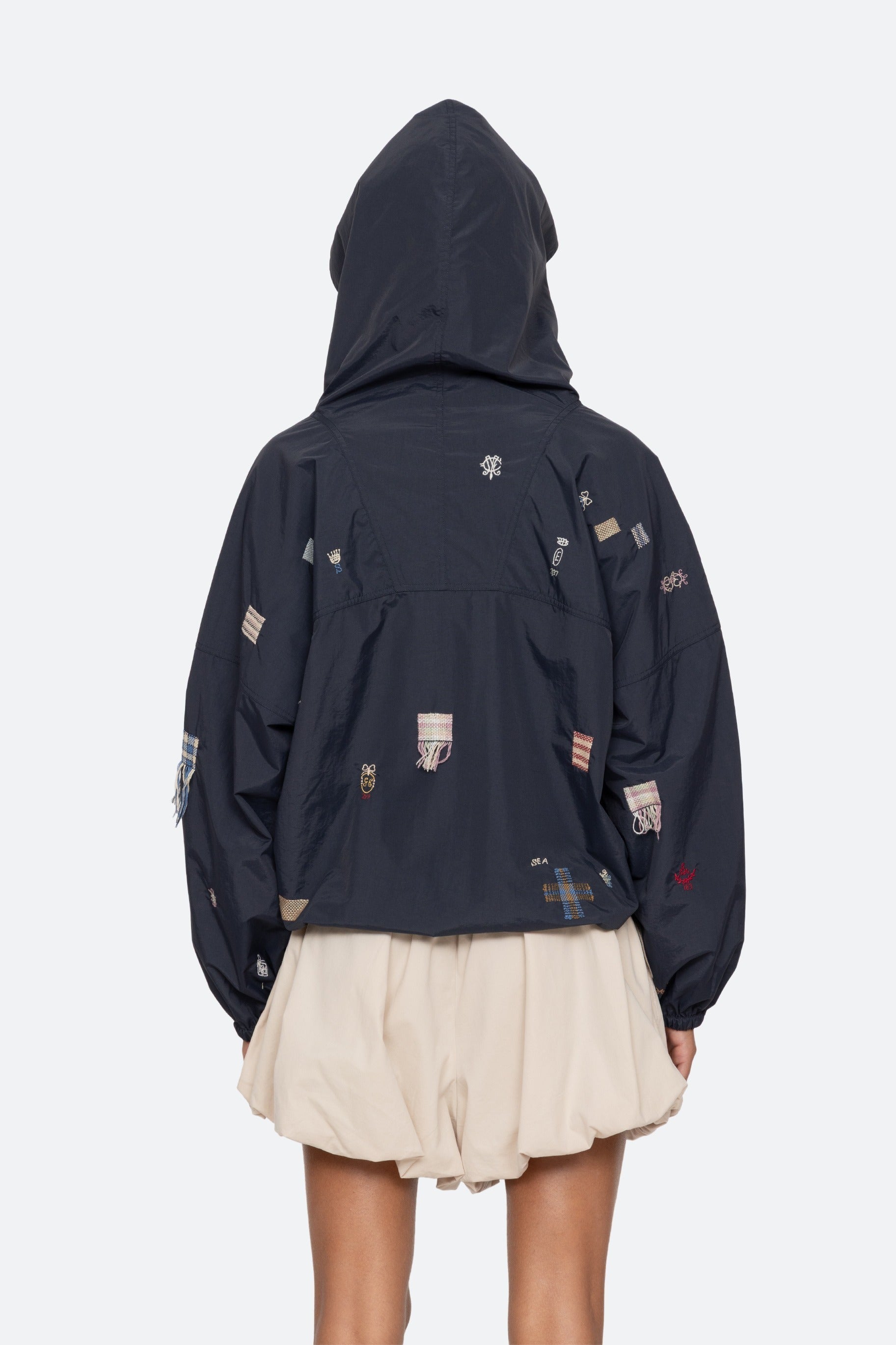 Self: 100% Nylon / Lining: 100% Cotton / Embroidery: 100% Polyester