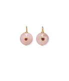 Please note that our semiprecious rose quartz stones are natural; each pair of earrings will vary slightly. Inlaid with a faceted semiprecious pink rhodolite.