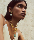 There's no place like here. Surrender to wickedly chic statement earrings in a double drop of green jade, inlaid with semiprecious lemon quartz stones.