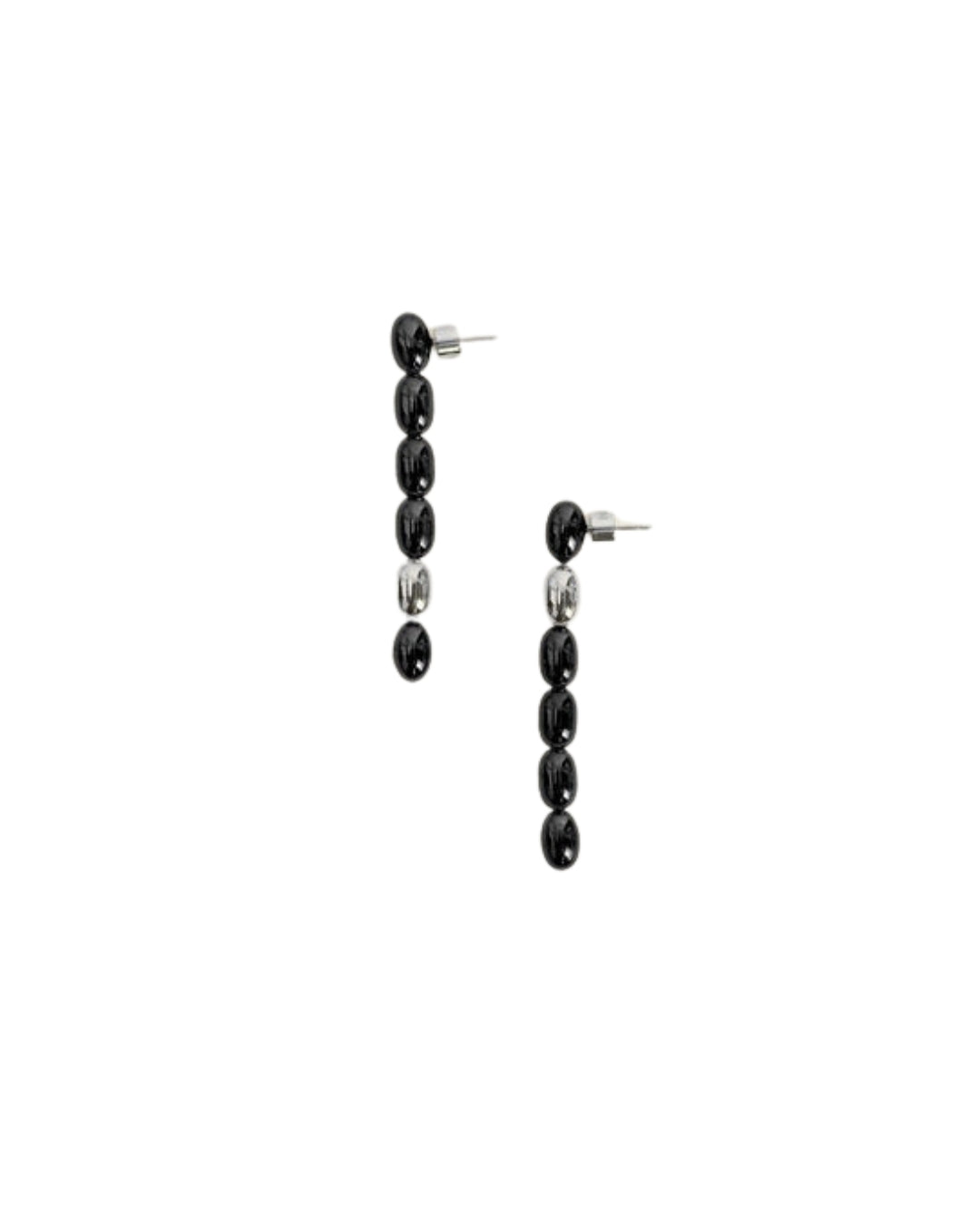 Composed of elongated, twisted beads that cascade gracefully, these drop earrings offer a sculptural silhouette with subtle movement and shine.