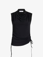 The Elna Top in Crepe Jersey is crafted to a slinky, draped silhouette, featuring a cowl neckline and adjustable side ties.