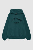 The Harvey Sweatshirt is an oversized hoodie made from midweight 100% cotton fleece. It features an ANINE BING Sport graphic at the chest in tonal lettering and subtle grinding along the edges of its hood, sleeve cuffs, and waistband for a vintage look. Includes a functional front kangaroo pocket.