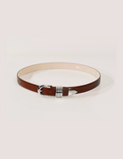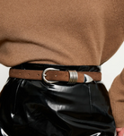 Déhanche's signature style featuring 5 rings adornments with 10 holes and an extended strap length to accommodate a broader range of sizes. Meticulously crafted from Italian calfskin suede and silver hardware.