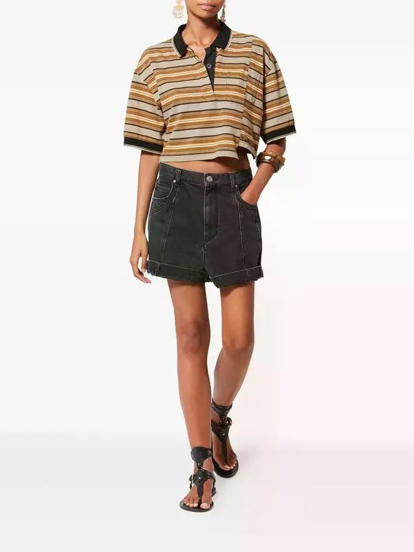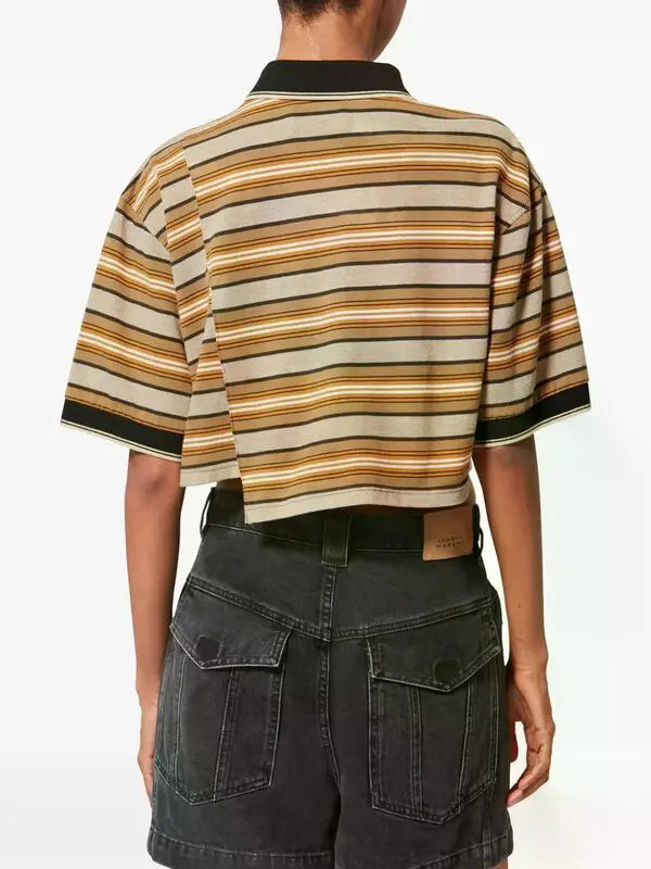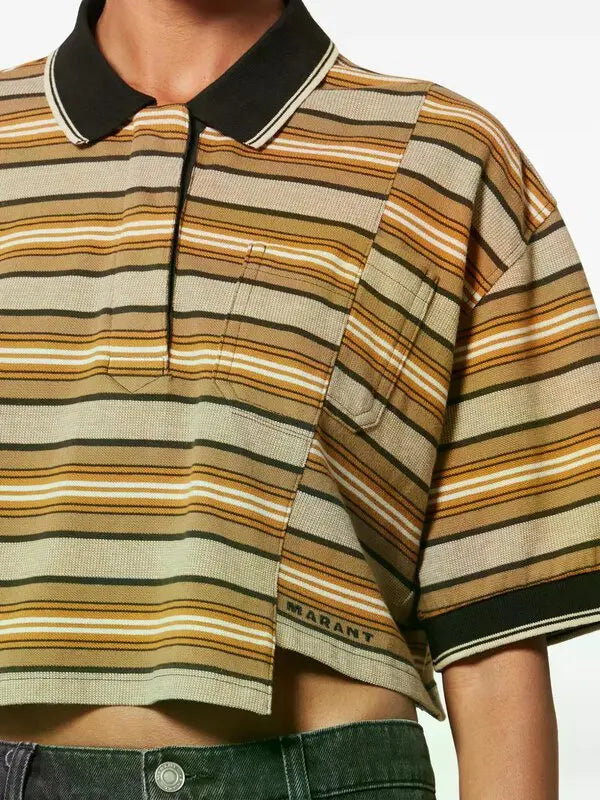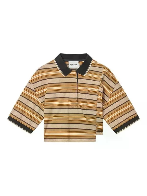 This MARANT ÉTOILE top features a striped pattern, polo collar, chest pocket, and short sleeves. It is finished with ribbed trims.