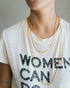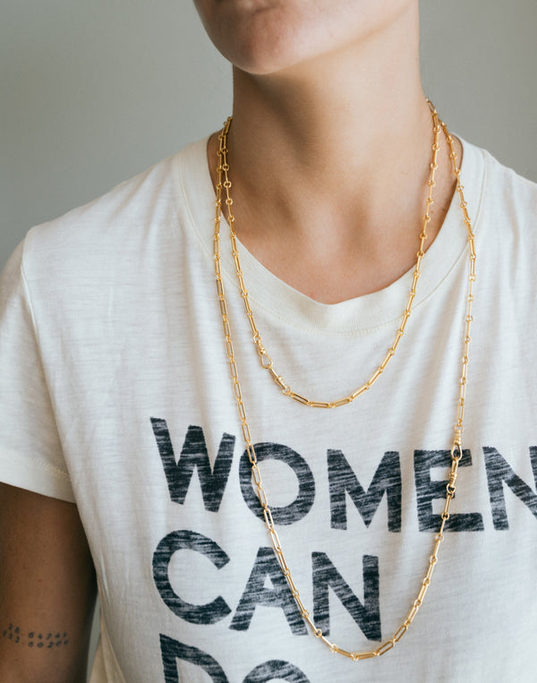 A new proposal for our classic Link chain that is so popular. Like the Link, this one is also entirely handmade, achieving that more irregular and organic feel in each link. Unlike the Link, its finish has two hooks that allow you to fasten it in various ways. It can be worn in a classic way, but you can also play a lot with its finishes and attach different charms.