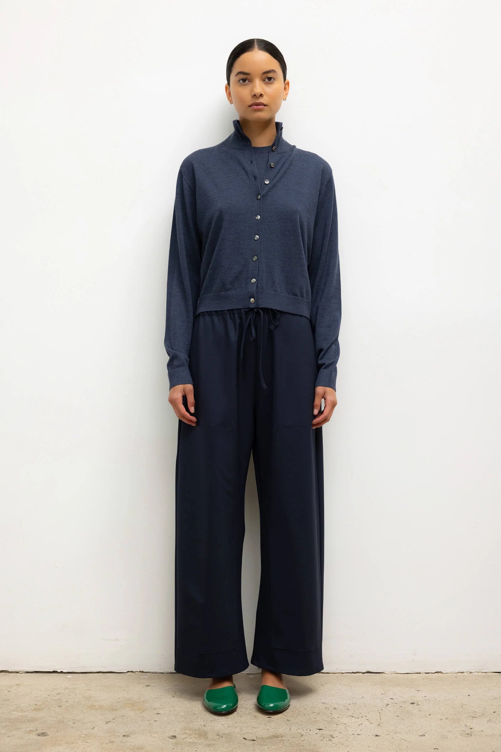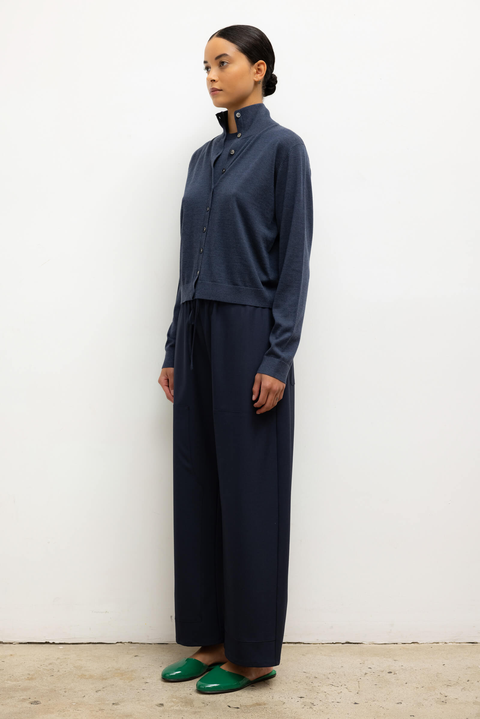Knit in our Italian-crafted James Merino Wool, The James Mock Neck Cardigan features a flexibly styled mock neck, button front closure, and delicate ribbed finishing.
