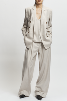 Crafted from breathable viscose fabric, the Nevin Mid-Waisted Lightweight Trouser in oatmeal offers a relaxed wide-leg silhouette that balances comfort with sophistication. Its versatile hue and tailored fit make it ideal for any occasion, seamlessly pairing with the Sullivan double-breasted blazer in oatmeal for a polished, cohesive look. Perfect for elevating your wardrobe with effortless style and expert craftsmanship.