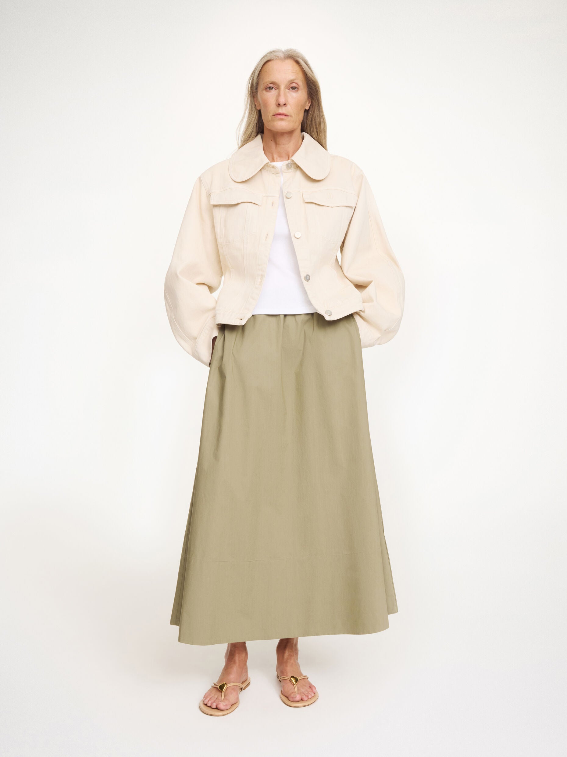 The Pheobes maxi skirt is an essential in your spring edit. The organic cotton design has an elastic band that sits high on the waist and a loose silhouette. Pair it with the Orilla scarf worn as a top on sunny days.