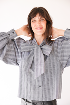 PLAID OVERSIZED BOW BUTTON DOWN BLOUSE