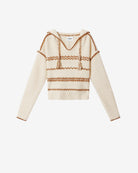 - Tweed style merinos wool sweater with contrasting ribbon