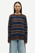 Knitted sweater with a loose fit and dropped shoulders. Button closure on the front. Rib-knitted collar, cuffs, and hem. Round neck. Brushed look. Main material made from an elastic blend including alpaca wool.