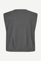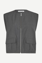 Vest with an oversized fit. Zipper closure on the front. Patch pockets with flaps on the front. Drawstring at the bottom hem. Main lining made from [desirable material/blend]/Fully lined. Main material made from a wool-blend.