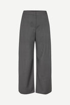 Mid-waist trousers with a loose fit and curved leg. Hidden hook and zipper closure at the fly. Elasticated insert at the back of the waistband. Side slit pockets on the front and welt pockets on the back. Main material made from a blend of recycled polyester and wool.