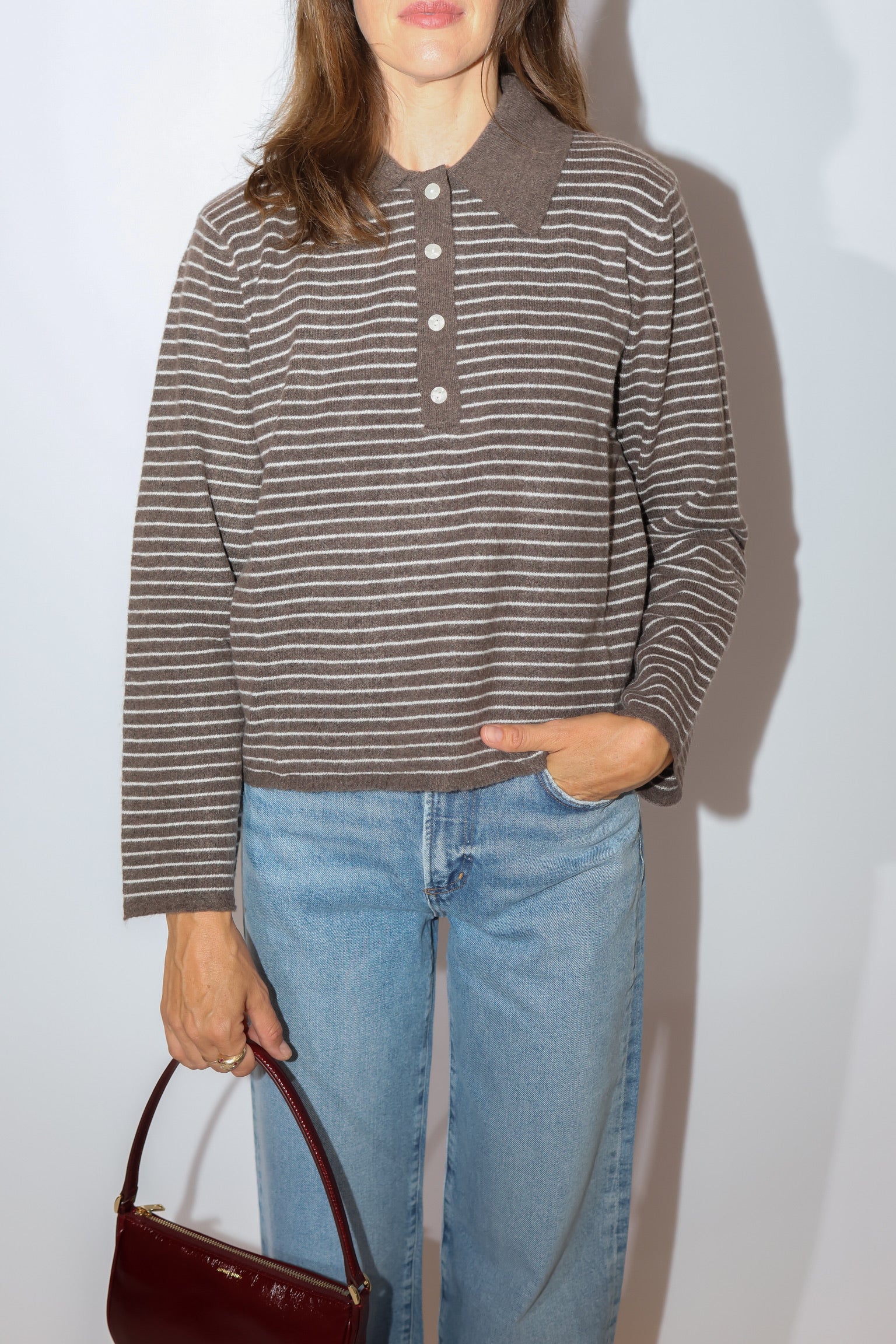 This lightweight striped polo sweater in classic brown offers a comfortable, versatile layer for any wardrobe. Its breathable fabric makes it perfect for year-round wear, while the timeless color pairs effortlessly with your favorite bottoms. Ideal for casual or smart-casual looks, this sweater is designed to keep you both comfortable and stylish.