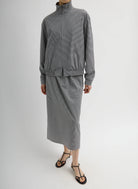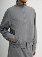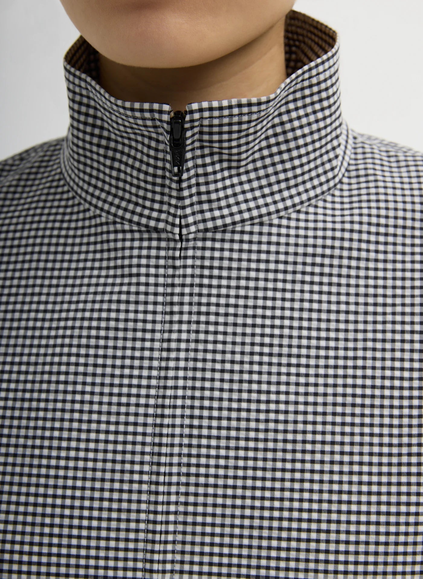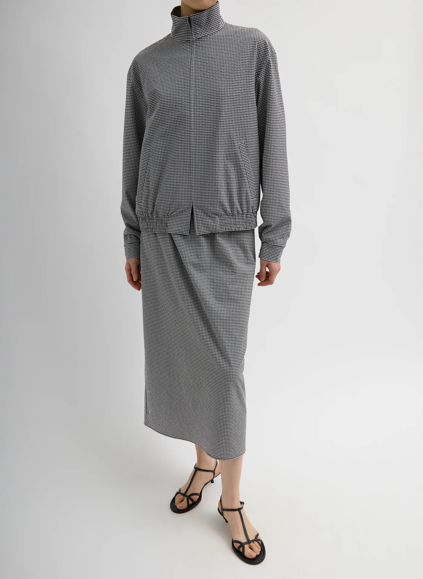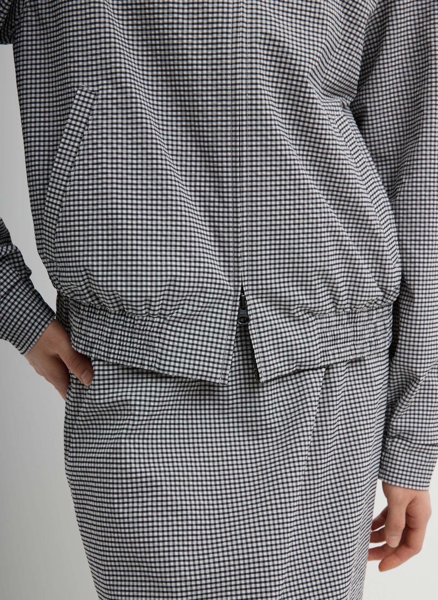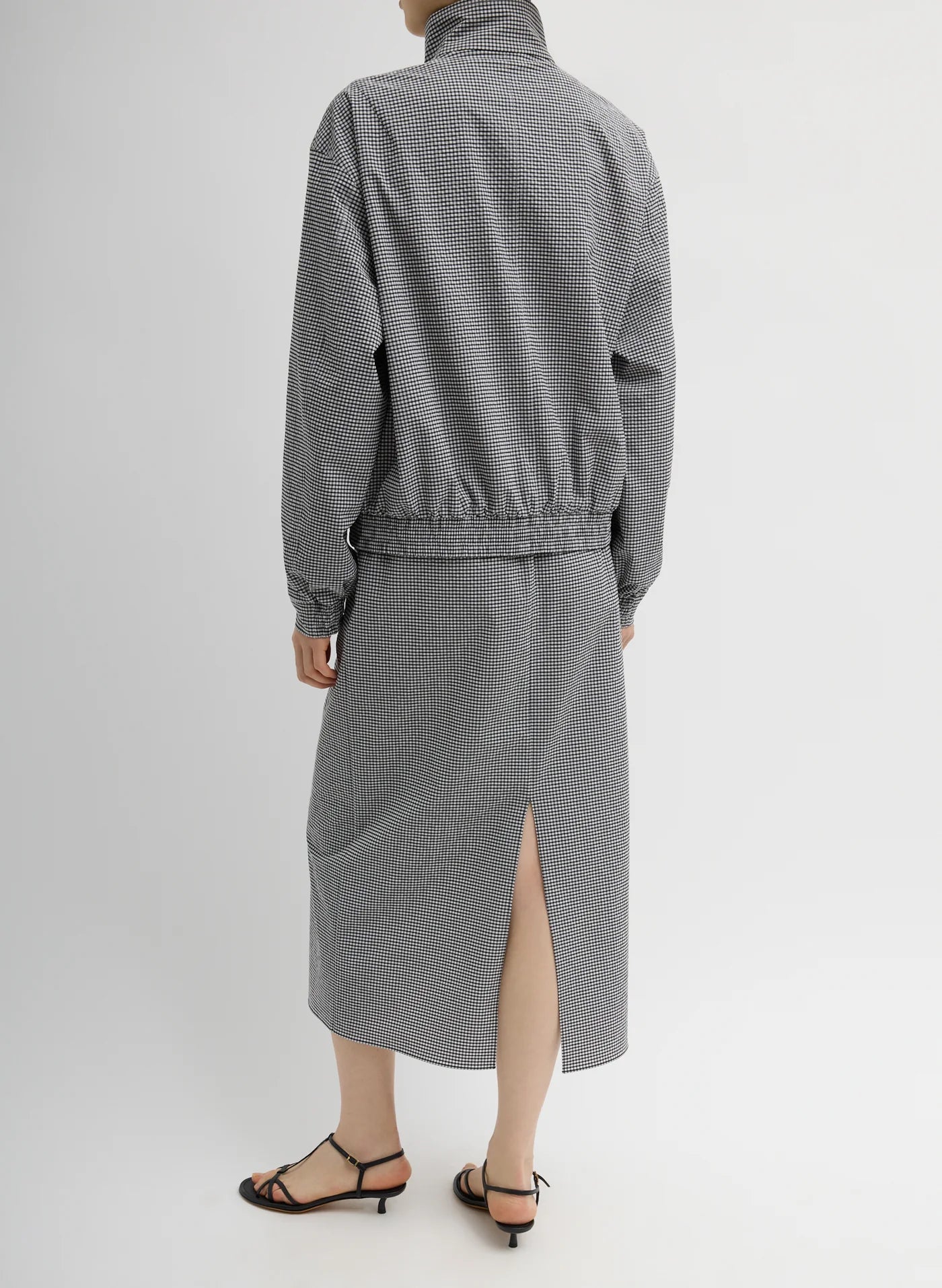 The Tech Gingham Track Jacket introduces a refined take on sport. Crafted from a lightweight Japanese nylon blend, it offers ease, structure, and year-round versatility. Style with the coordinating Slip Skirt and Milbourne Heel for a complete set, or contrast it with the Nylon Snap Jogger for an effortless play on texture and proportion.