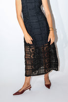 This textured midi dress features elegant cutout details for a modern touch, falling gracefully to the knee for a flattering silhouette. Its versatile design pairs effortlessly with simple accessories and heels, making it perfect for both daytime events and evening outings. Comfortable yet chic, it offers a stylish foundation for your wardrobe essentials.