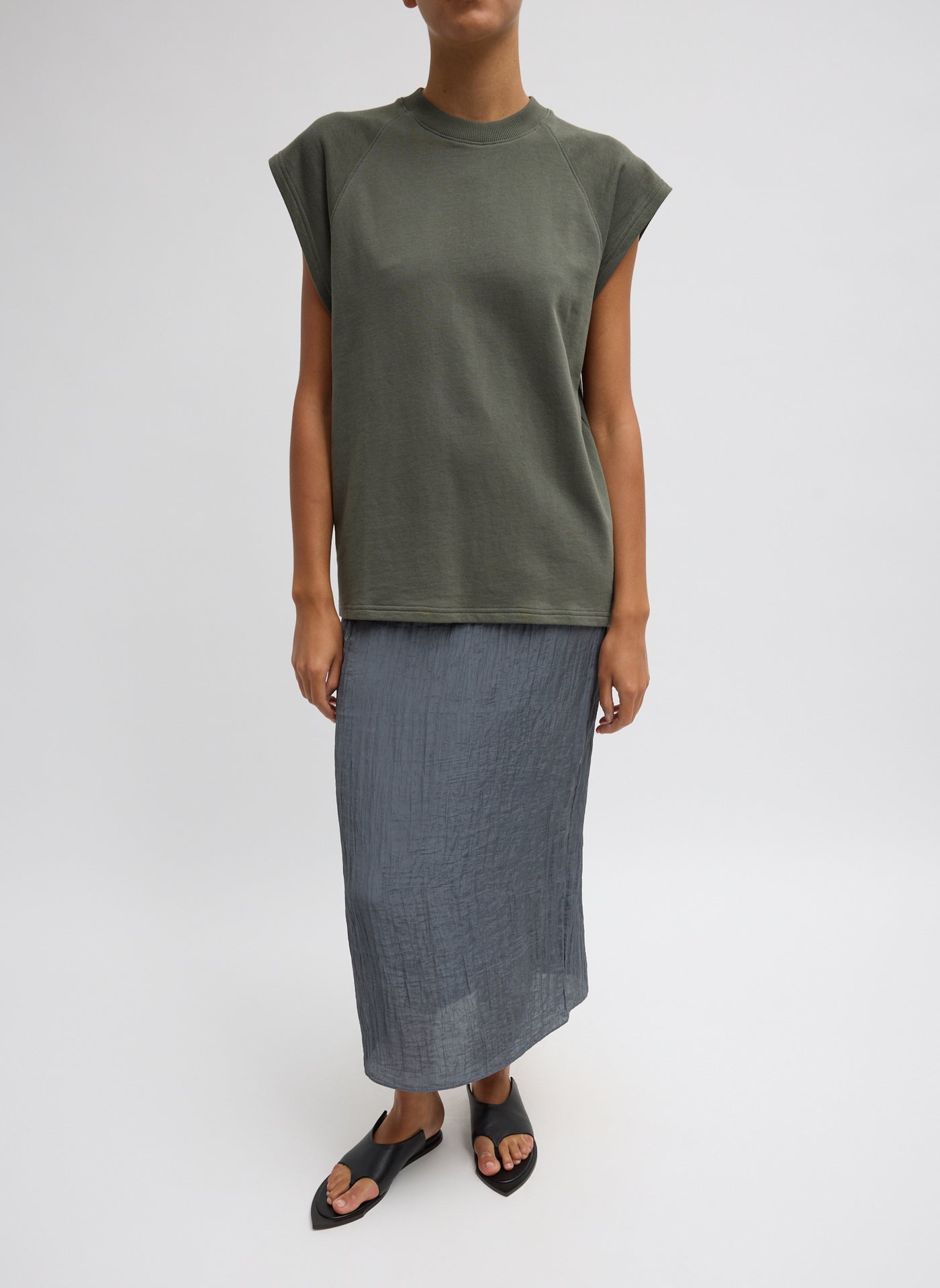 Designed with an elastic waistband and a clean back slit, the Crinkle Slip Skirt offers ease, movement, and polish in equal measure. The lightweight textured fabric is easy to layer year-round, making it ideal with tees and sneakers for casual wear or styled with blazers and knitwear for more refined settings. A true Without Fail, it earns its place through versatility and repeat wear rather than trend.