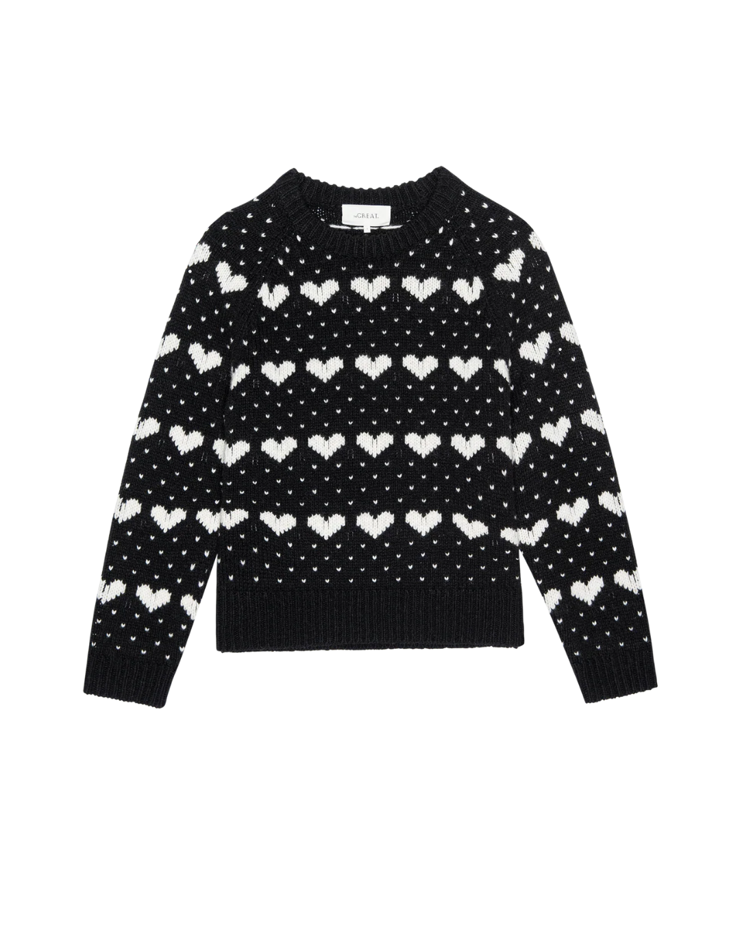 The Heart Crew is crafted from a warm blend of wool and nylon. This heart motif sweater is reminiscent of vintage hankies and features a pullover crewneck style and a boxy fit hem. The delicate ribbing lends texture to the neckline, hem, and cuffs.