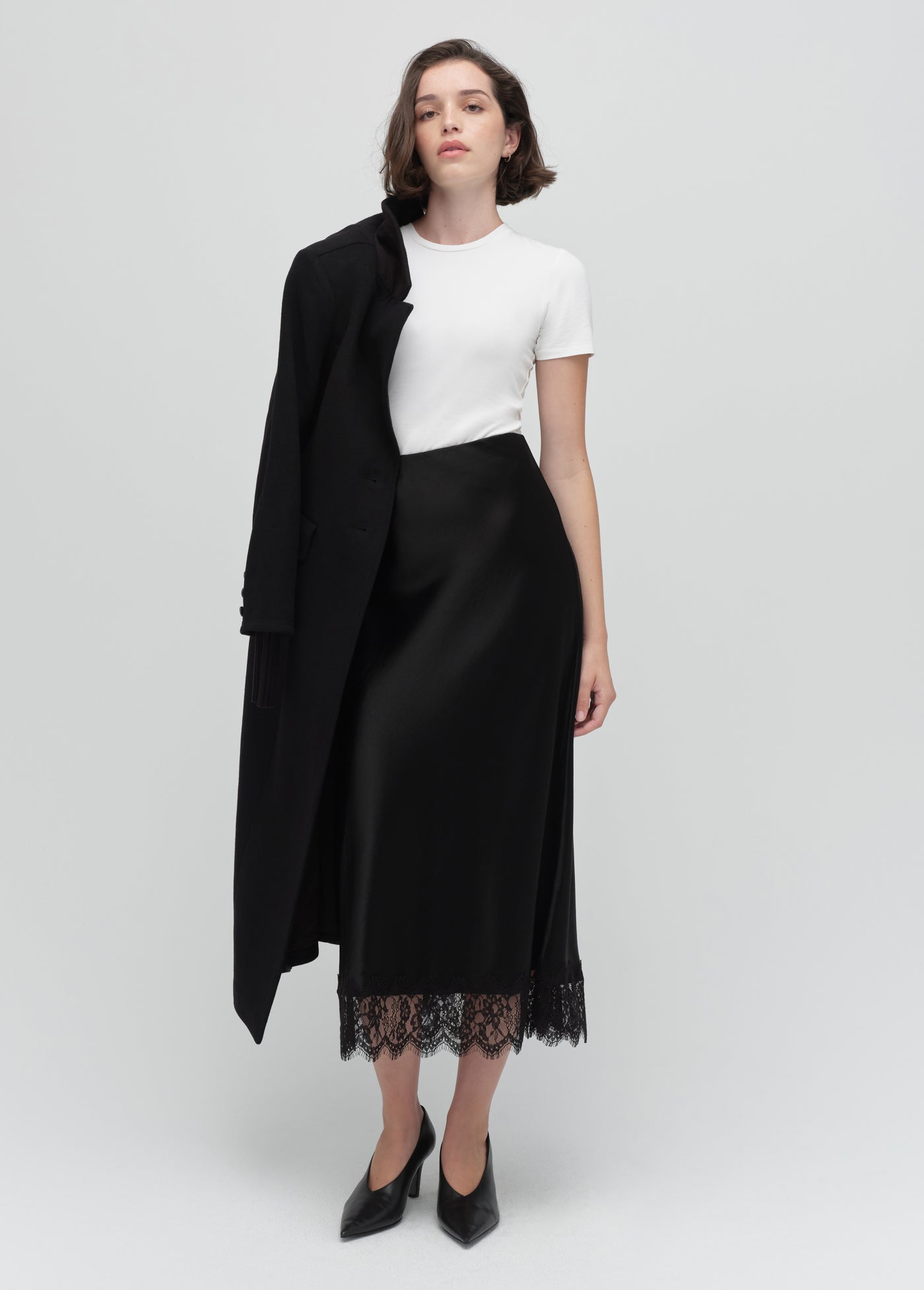 Inspired by everyone’s favorite skirt, our new version is cut from textured fabric with a subtle sheen. Perfectly proportioned for petites, the bias-cut silhouette sits high on the waist, skims the body, and falls into a billowy fit with 52.5" length. The lace trim is the finishing touch (a little thrill we can’t resist).