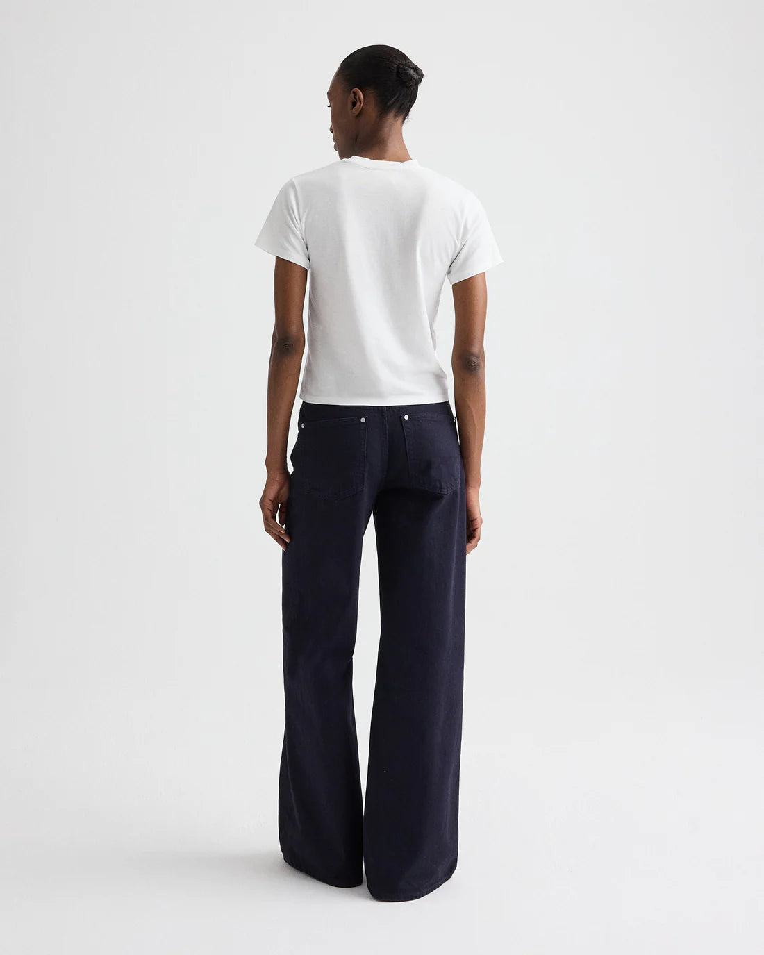 Mid-rise, wide leg Jean in vintage inspired heavy denim. The Tiny Dancer is relaxed at the hip, wide at the leg, and features a five-pocket style, detailed with nail head rivet hardware. Complete with a zip-fly, belt loops, and a shank button at the waistband.