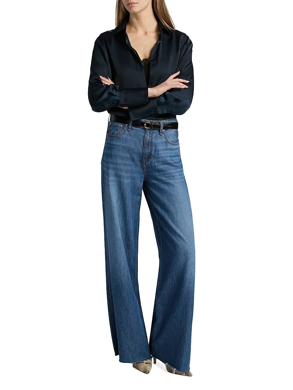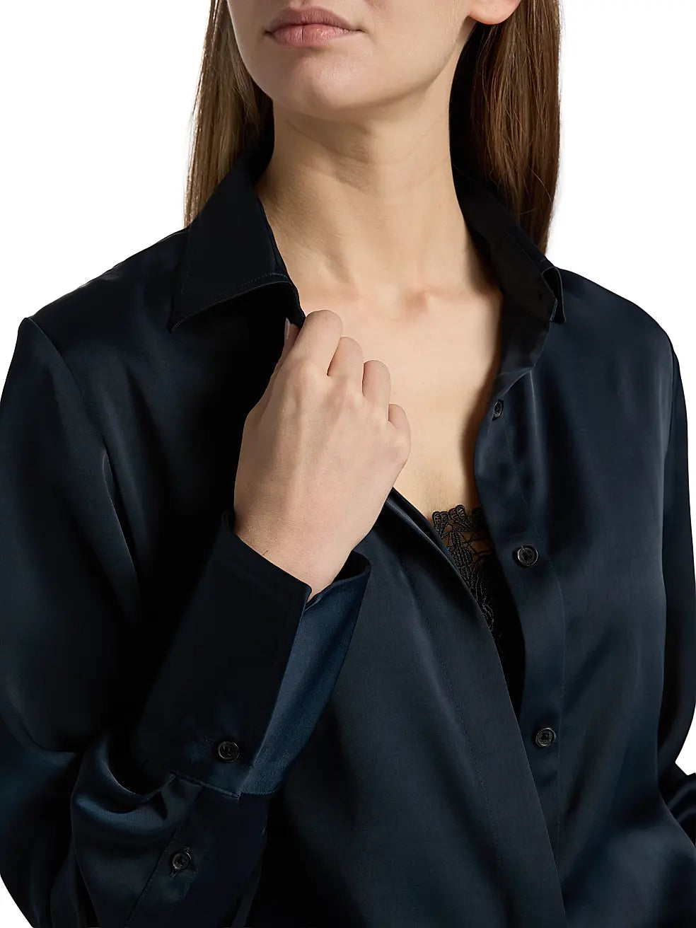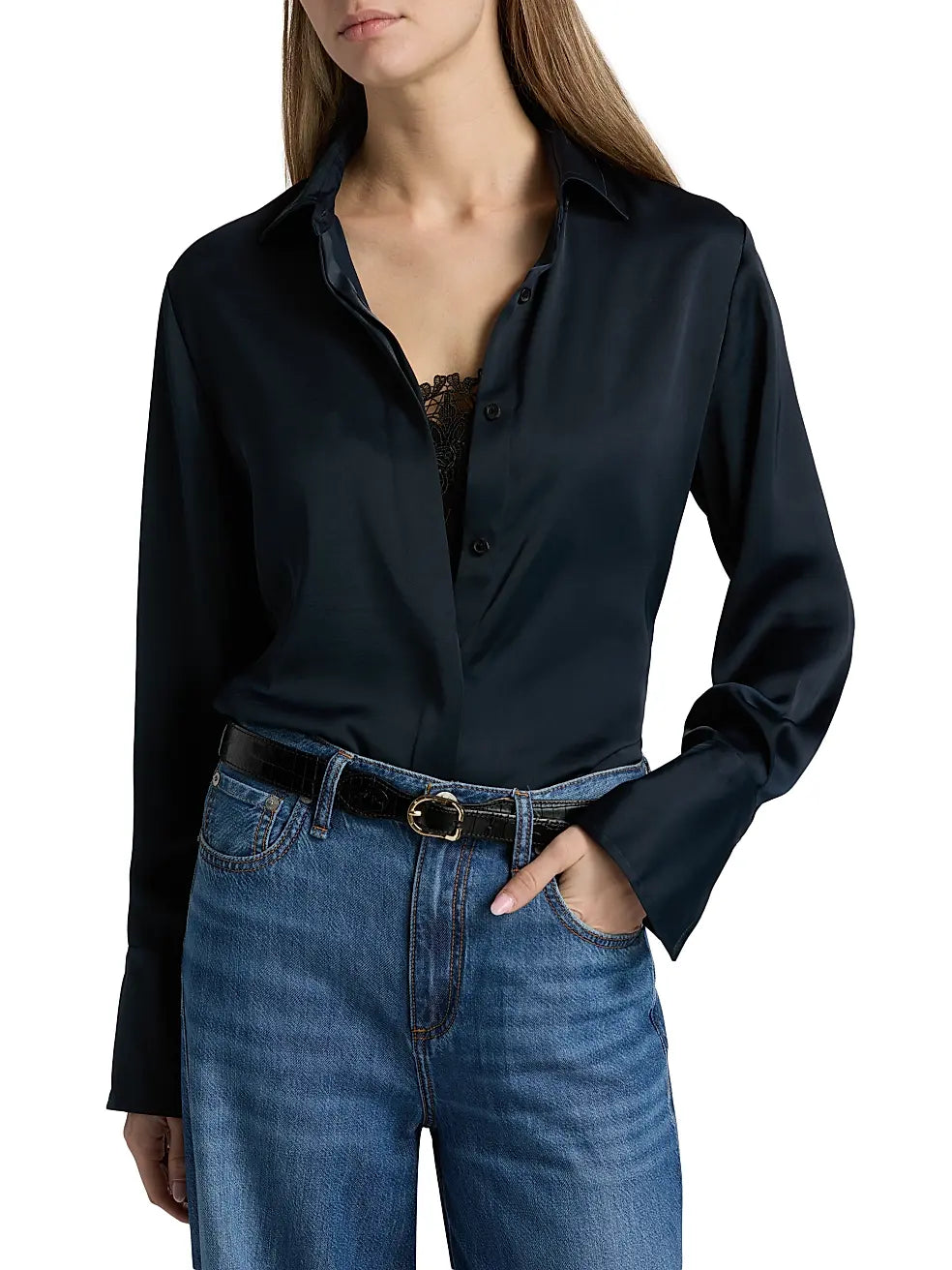 The Venus Popover blouse from rag & bone resembles two separate pieces, including a lace-trimmed camisole-like inlay with a button-front outer layer.