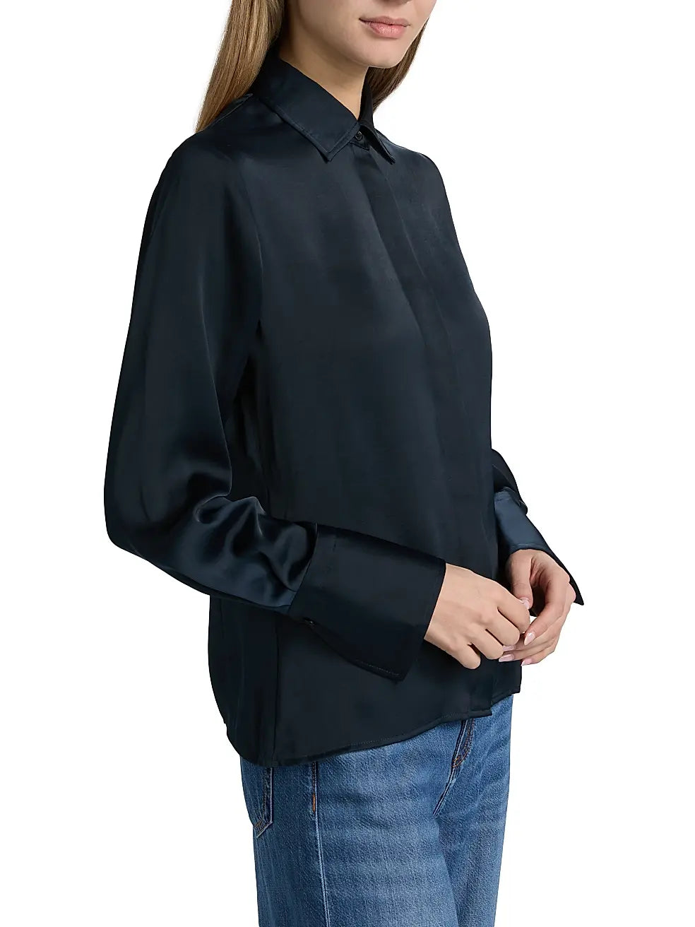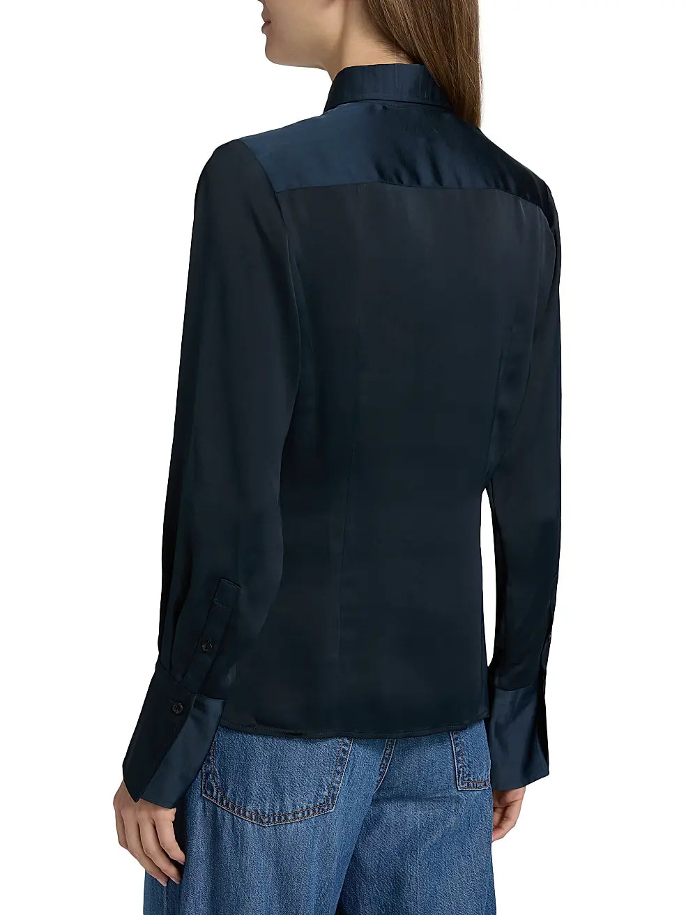 - Long sleeves, button barrel cuffs