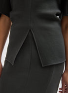 Crafted from refined wool crepe, the Slit Front T-Shirt features a front slit and a full-length zipper closure up the back for effortless detail. Designed as a go-to lowkey top, it balances modern edge with timeless ease. Pair it with the coordinating skirt and Bux boot for a chill, modern-classic take on set dressing, or dress it down with denim for versatile fall layering and beyond.