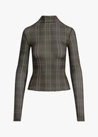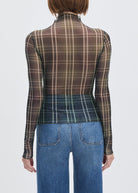 Sheer fantasy, for real. With a body-skimming fit, The Sheer Fantasy Top features a mesh mockneck and sheer sleeves. Pretty and plaid all at once.