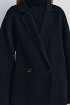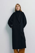 - A double-breasted coat in a rich wool-cashmere blend, handmade for soft structure. Sharp lines meet artisanal ease in a timeless outer layer.