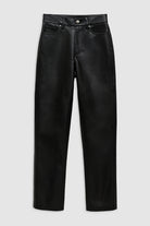 The Bruno Pant is constructed from soft yet structured regenerated leather with a slight sheen and without stretch. Its traditional denim-inspired silhouette features a 5-pocket design, zip-front closure, and a slim-straight leg with a clean, ankle-length hem.