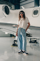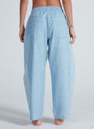 The Cancun Pant is your off-duty essential, designed for laid-back days and warm-weather escapes. With a high rise, wide leg, and rope drawstring waist, it blends relaxed ease with effortless style. Available in a classic blue stripe cotton, it's the pant you'll want to live in all summer long.