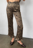 The Kaja Pant in Leopard is our new favorite and hopefully yours too. The Kaja Pant features a side zip and a fluttery ruffle detail at the bottom hemline. Meant to sit at your natural waist with a slightly flared leg opening, this super flattering fit makes the Kaja the perfect pant to grab when jet lag lingers and you'd prefer to stay in bed but your pajamas don't quite meet the dress code.