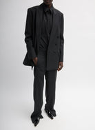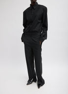 Crafted from recycled tropical wool, the Jules Trouser combines classic tailoring with unexpected edge. Featuring snaps at the ankles, the trouser can be worn closed for a streamlined look or opened to create dramatic slits that shift with your mood.