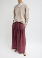 A new take on utility, elevated in fabrication. Crafted from Italian pure silk in warp and a Tencel blend, the washed finishing gives it a light and soft hand-feel. Designed with a wide-leg silhouette and triple pleats for effortless movement, these cargo pants offer structure with a sense of ease. Functional cargo pockets and belt loops add utility without bulk, striking the perfect balance between relaxed and refined.