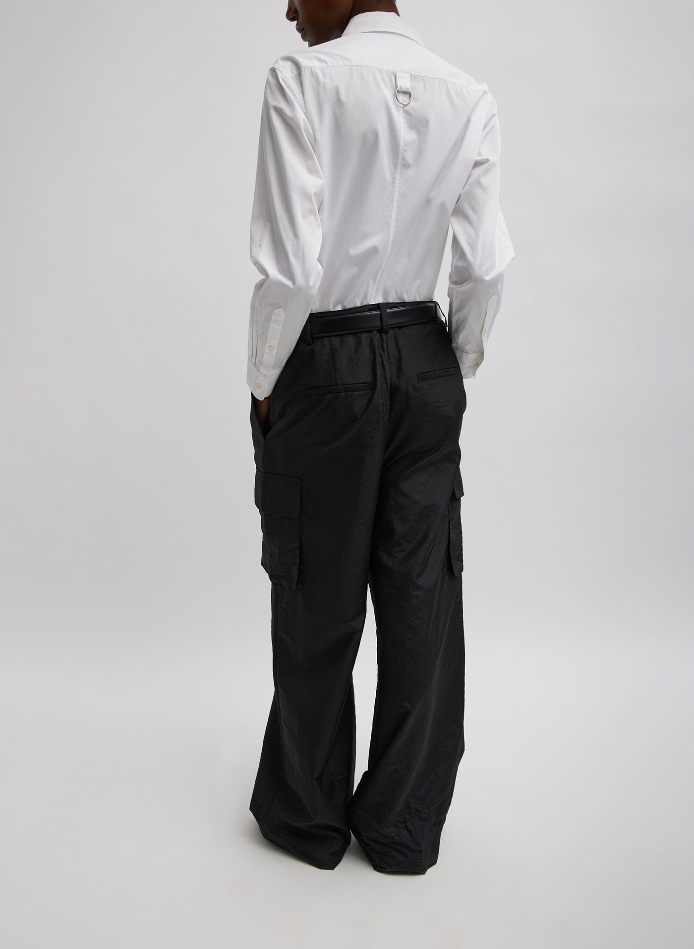 This assortment serves as your WOFs (Without Fails) and are designed to create space in your wardrobe for creativity and experimentation. No matter how extreme your closet may become, these pieces serve as the grounding element that ties everything together. A similar shape to the classic Stella pant, this nylon version has a relaxed cargo pocket, but maintains the same level of elevated functionality. Made in a nylon blend, these pants possess the relaxed elegance needed to transition from the grocery store, to the office, to evening with the right shoes.