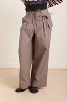 Oversized and structured the Tatianna trouser in grey are made from 100% organic cotton. Featuring a removable pocket, pleat detailing and custom DM embroidery on the back pockets.