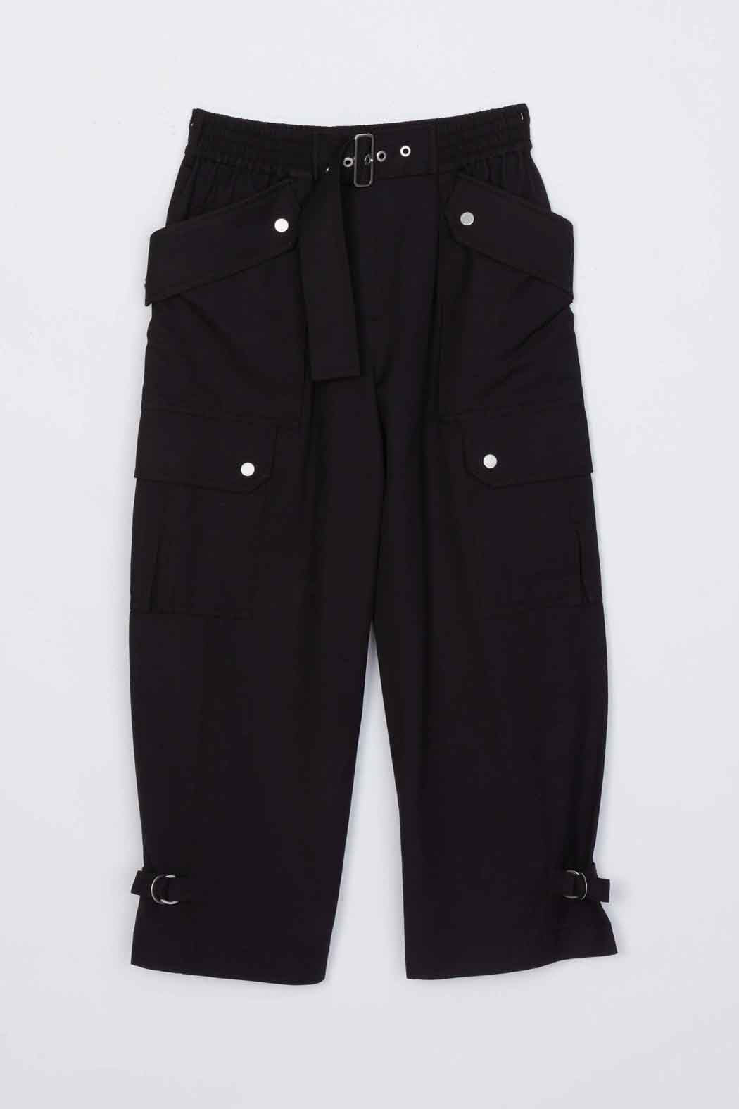 A fresh take on everyday ease, these cargo trousers are built with utility at their core yet refined enough for city dressing. Cut with a cropped, relaxed leg, they feature oversized flap pockets, adjustable buckle tabs, and a softly gathered waistband with D-ring closure. The result: a modern balance of function and polish that transitions seamlessly from off-duty to dressed-up styling.