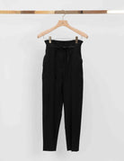 These Wool Origami Pants with a leather belt feature a stylish paperbag waist that adds a modern, flattering silhouette. Perfectly versatile, they pair effortlessly with a bodysuit and blazer or a third piece for a polished, put-together look. Designed to combine comfort and sophistication, these pants will support your style whether at the office or out for an evening.