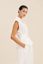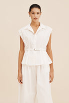 Elegant and versatile, the Juno Shirt is cut from soft cotton sheeting and features short sleeves, a collared neckline and centre front buttons. It has a detachable waist belt which creates volume throughout the hem.