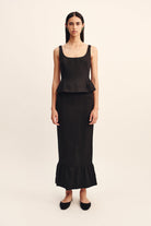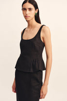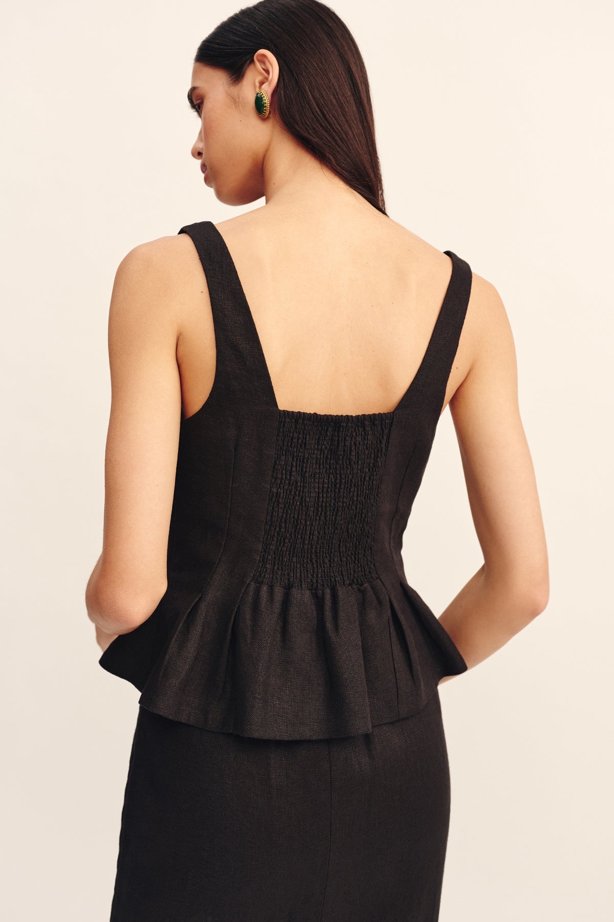 Tailored from premium linen, the Rosalie Top is designed for a close, flattering fit. It features an elegant scoop neckline, peplum hem and shirring at the back for comfort.